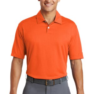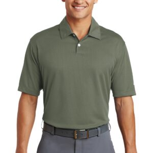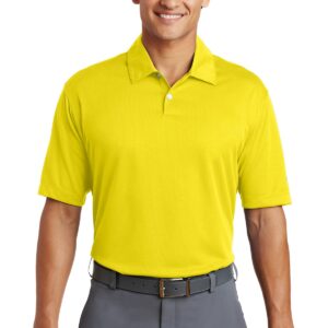 An understated pebble texture meets high-performance moisture -wicking from Dri-FIT fabric in this Nike style. Designed to keep you comfortably dry, features include a self-fabric collar, two-button placket and open hem sleeves. Pearlized buttons are selected to complement the shirt color. The contrast Swoosh design trademark is embroidered on the left sleeve. Made of 3.9-ounce, 100% polyester.