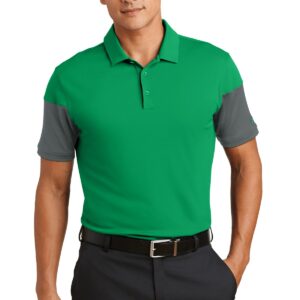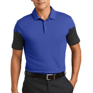 Bold colorblock sleeves and Dri-FIT moisture management technology give this sophisticated polo a contemporary look and all-day comfort. Design features include a flat knit collar, three-button placket and open hem sleeves. A contrast Swoosh design trademark is embroidered on the left sleeve. Made of 5.1-ounce, 100% polyester Dri-FIT fabric. Modern fit is slightly tailored through the chest, arms and waist.
