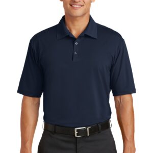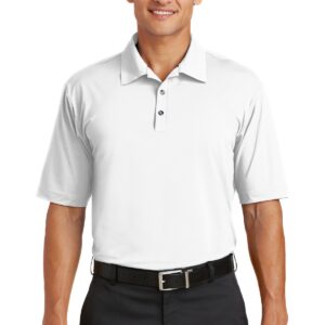 A beautiful and luxurious addition to any wardrobe. Subtle ottoman texture meets the unrivaled performance of Dri-FIT moisture management technology. Engineered with a bonded self-fabric collar for classic refinement. Three-button placket. Heat transfer label for tag free comfort. Pearlized buttons with metal rims. Open hem sleeves and side vents. Contrast heat transfer Swoosh design trademark on the back right shoulder. Made of 5.61-ounce, 87/13 polyester/spandex Dri-FIT fabric.