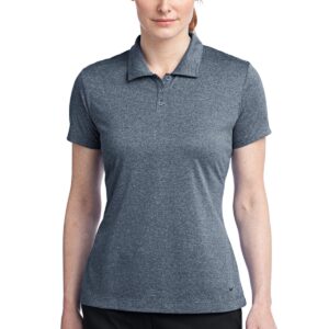 Stay comfortable before, during and after the round in this sophisticated style. Dri-FIT moisture management technology helps keep you dry and focused. Contrast stitch details on the seams and collar. Tailored for a feminine fit. Other features include a self-fabric collar, three-button placket and open hem sleeves. A contrast heat transfer Swoosh design trademark is on the left hem. Made of 4-ounce, 100% polyester heathered jersey Dri-FIT fabric.
