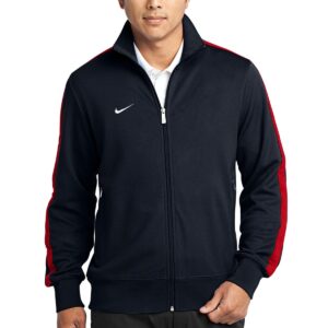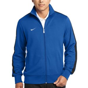 Originally designed for sport more than a decade ago, the N98 lives on in a sophisticated version that’s just as wearable off the course. Design details include flat knit collar, cuffs and waistband. Stripe and piping on the sleeves and front zippered pockets. A white Swoosh design trademark is embroidered on the right chest of Varsity Royal, White and Navy. A black Swoosh design trademark is embroidered on the right chest of Black. Made of 8.7-ounce, 53/47 poly/cotton double pique.