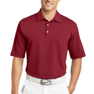 Achieve the pinnacle of performance in this style that pairs a rich diamond texture with Nike Sphere Dry moisture management technology. The ultramodern fabric has a textured inside surface that minimizes cling by allowing only a portion of the shirt to come in contact with the skin. Perfect for any occasion, this exceptional shirt is designed for maximum movement and increased air flow. Finished with a self-fabric collar and open hem sleeves. Features a three-button placket. Pearlized buttons are selected to complement the shirt color. The contrast Swoosh design trademark is embroidered on the left sleeve. Made of 6.35-ounce, 89/11 polyester/spandex.