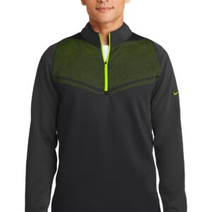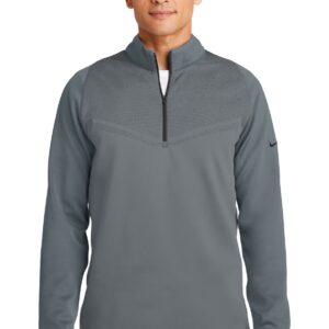 For lightweight, allover warmth and temperature regulation, this cover-up excels with Therma-FIT fabric. The chevron design across the chest provides a striking pop of color detail. Distinctive contrast color at the neck and zipper, plus a brushed interior makes this versatile layering piece an everyday essential. Details include a reverse coil zip-through collar, open cuffs and an open hem. The contrast Swoosh design trademark is embroidered on the upper left sleeve. Made of 10.2-ounce, 100% polyester Therma-FIT fabric.