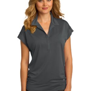 The super-subtle micro stripe takes this innovative polo to a higher level. | 5-ounce, 100% poly jersey with stay-cool wicking technology OGIO heat transfer label for tag free comfort Self-fabric collar Open placket Cap sleeves with sleeve tabs and O debossed rivets Banded hem with slight ruching Reflective heat transfer O at hem