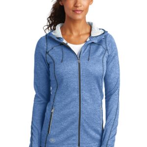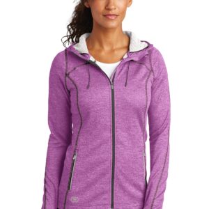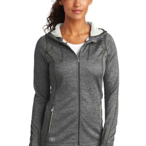 LAYERABLE WARMTH STRETCH REFLECTIVE DETAILS | 6.2-ounce, 100% poly heather Interior textured fleece Reflective OGIO heat transfer label for tag-free comfort Three-panel hood with drawcord and toggles Reflective O heat transfer at hood Lower front zippered pockets with reflective taping and clear silicone zipper pulls Set-in sleeves with shaped cuffs and thumbholes for warmth Reflective O heat transfer at back left panel Reflective O heat transfer at front right hem