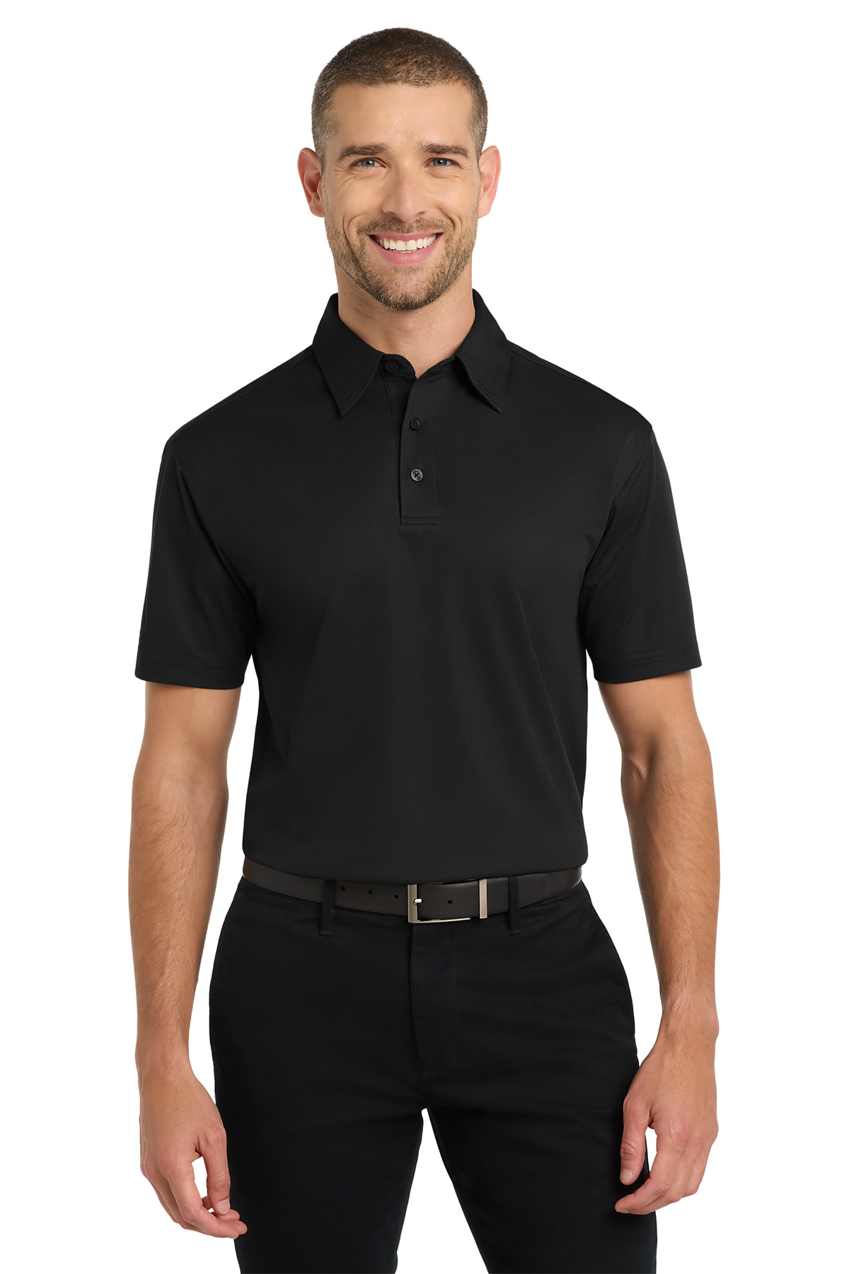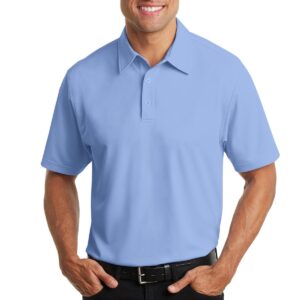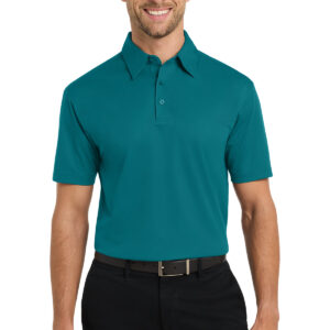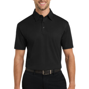 Designed for modern office pros and urban commuters, our sleek polo fuses the comfort of a knit with the structure of a woven shirt. It wicks moisture, has ease of movement and an unencumbered fit. | 3.83-ounce, 100% micropique polyester tricot Self-fabric collar with collar stand 3-button placket with dyed-to-match buttons Back yoke Open hem sleeves Side vents