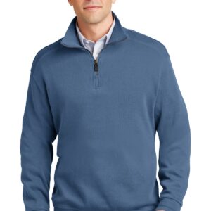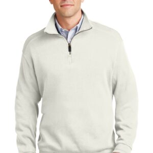 The luxurious look and feel of this style extends beyond the weekend. It mixes effortlessly with casual and business attire alike. With a rich, subtle texture, this flatback rib style is finished with impeccable details, making it perfect for a resort escape or around the office. | 10-ounce, 87/13 cotton/poly flatback rib Twill-trimmed neck Honeycomb knit placket box Brass-tone metal zipper with leather pull Rib knit cuffs and hem Double-needle cuffs and hem