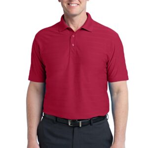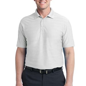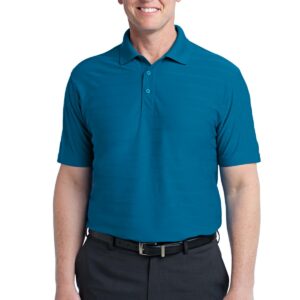 A subtle pique and jersey self-jacquard horizontal texture makes this polo stylish and work-friendly. Exceptional moisture wicking makes it comfortable. | 5.2-ounce, 100% polyester Flat knit collar 3-button placket Open hem sleeves Double-needle sleeves and hem Side vents