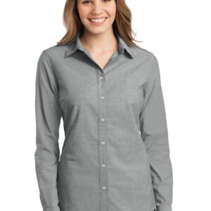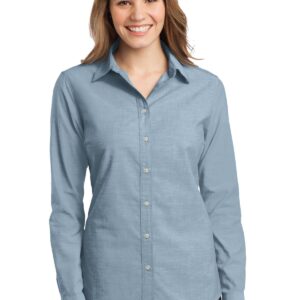 Soft texture and tonal stitching make our classic chambray shirt a modern must-have for any occasion. This subtle nod to the utility work shirt features double- and triple-needle stitching for character and durability. | 4.5-ounce, 65/35 cotton/poly Double-needle stitching on placket, collar and cuffs Triple-needle stitching on shoulder seams and back yoke Gently contoured silhouette Open collar Bust darts Back princess seams Faux horn buttons Adjustable cuffs with button-through sleeve plackets Slightly contoured shirttail hem to be tucked in or left out