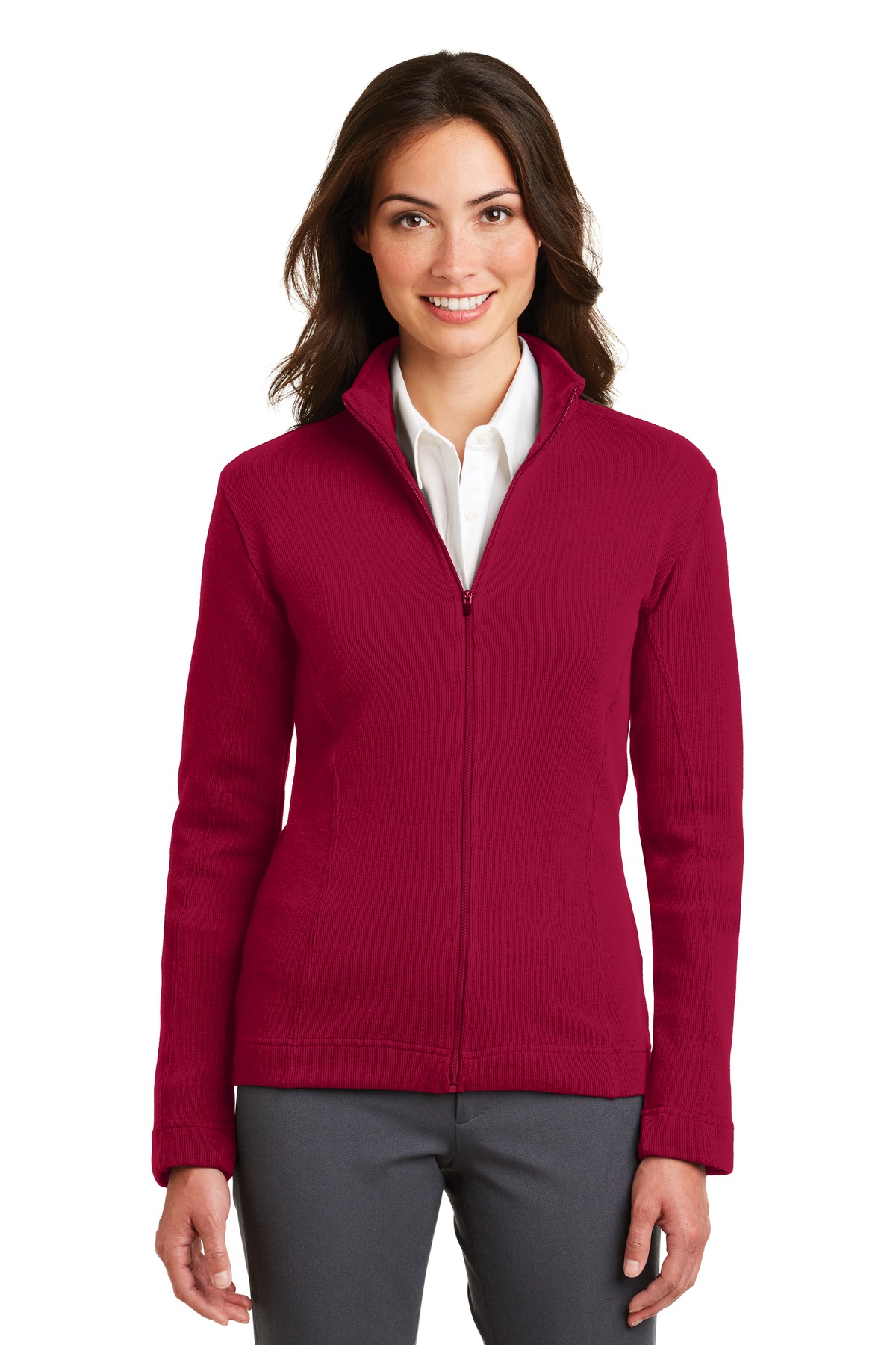 The luxurious look and feel of this style extends beyond the weekend. It mixes effortlessly with casual and business attire alike. With a rich, subtle texture, this flatback rib style is finished with impeccable details, making it perfect for a resort escape or around the office.| 10-ounce, 85/15 cotton/poly flatback rib Princess seams Twill-trimmed neck Dyed-to-match zipper Open cuffs and hem Double-needle cuffs and hem