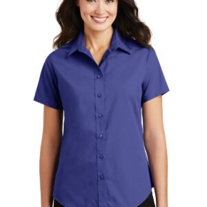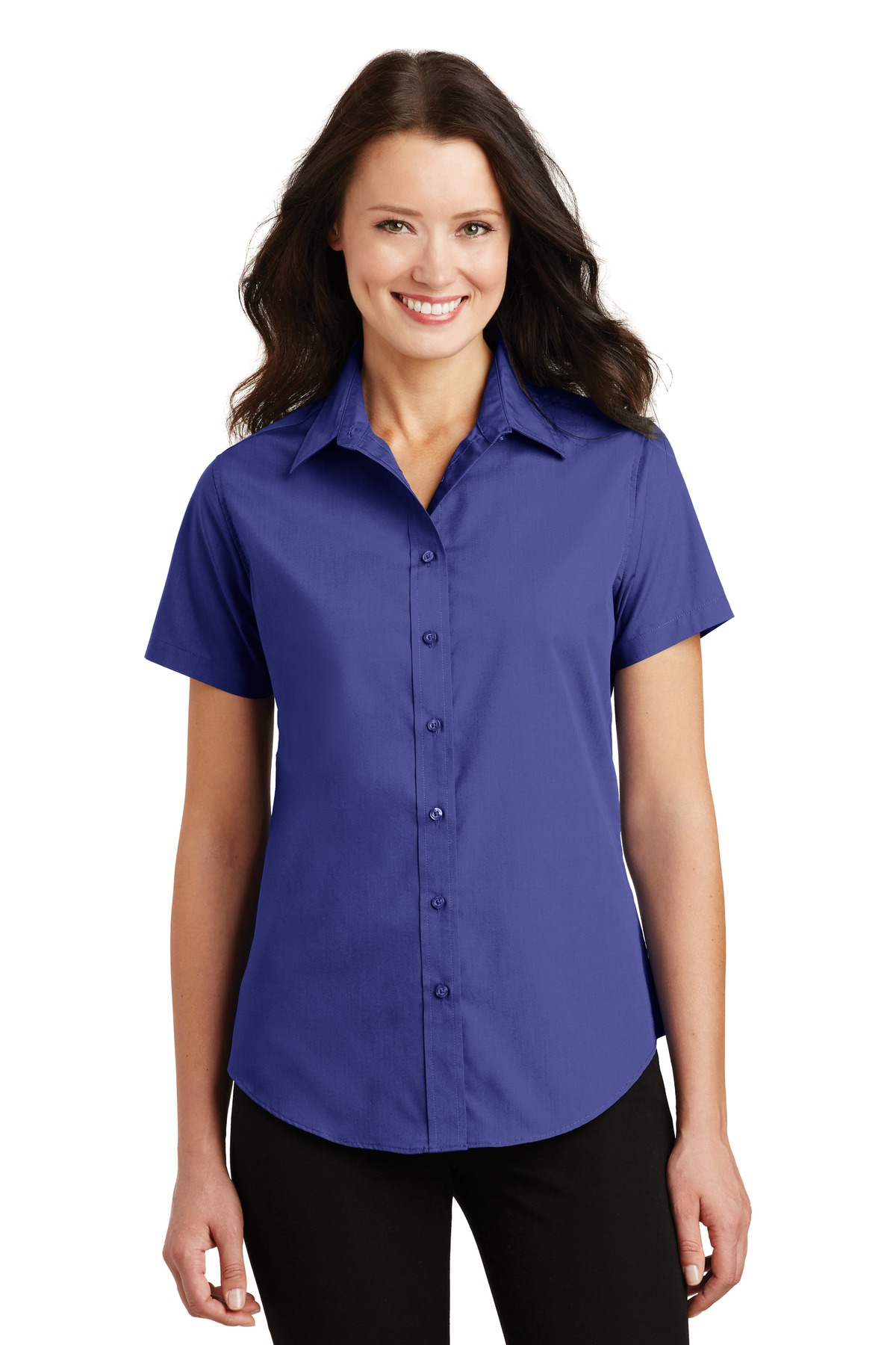 A smart choice for the workplace and your budget. Our poplin shirt can take daily wear and tear and remain looking great, thanks to an Easy Care blend. Lightweight and soft, it’s also durable and perfect for any occupation requiring a neat, professional look. | 2.95-ounce, 65/35 poly/cotton Open collar Dyed-to-match buttons
