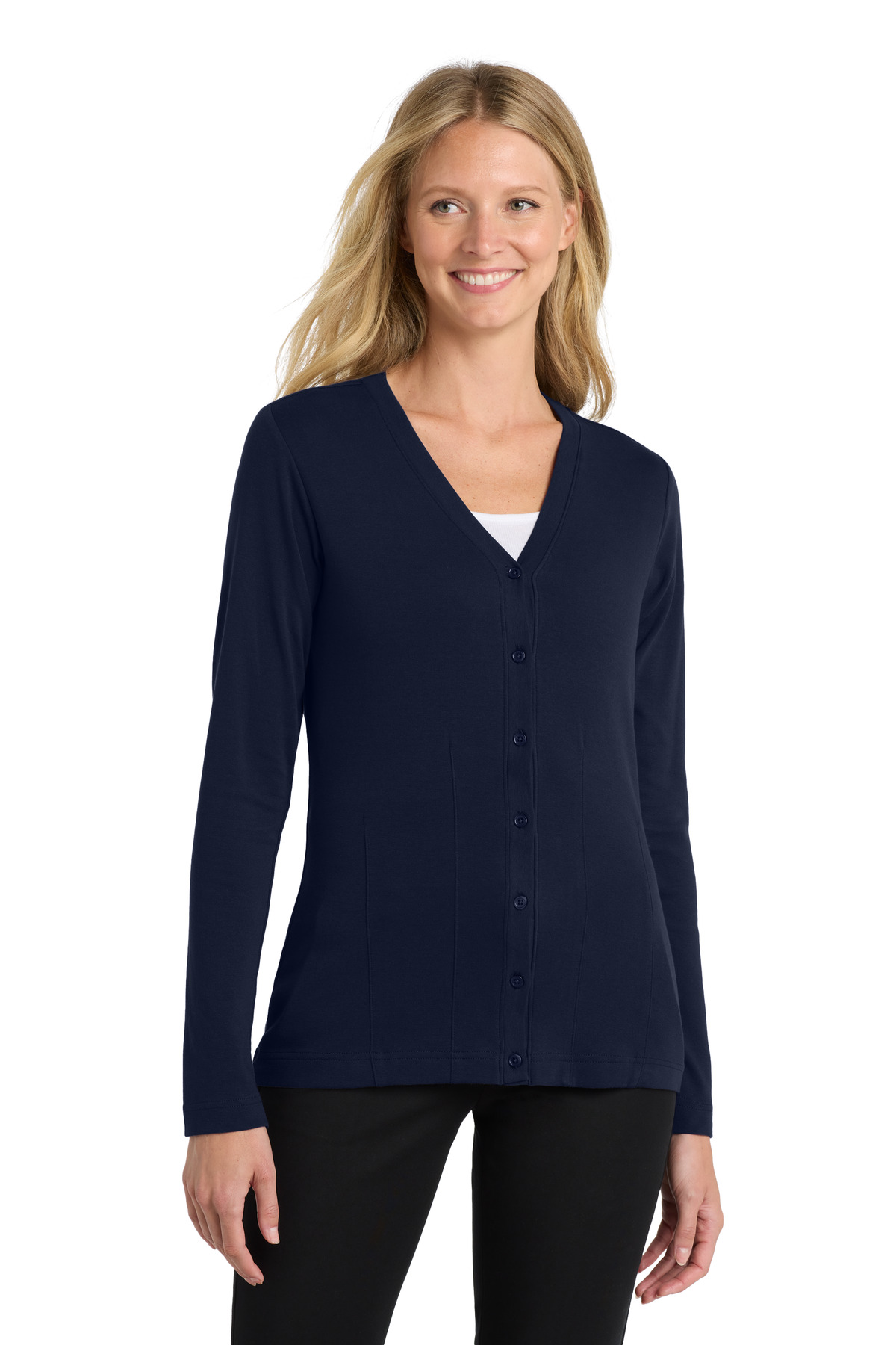 Women of all shapes will appreciate our Modern Stretch Cotton Collection. With an updated fit and figure-flattering details, the extra soft cotton is combined with a dash of spandex to retain shape—and make the most of yours. We’ve added extra length throughout the body for clothes that move with you for exceptional comfort all day long. A cozy top layer, our cardigan has feminine darts in the front and back and extra length in the sleeves for comfort from 9-to-5 and into the weekend. | 6.5-ounce, 96/4 cotton/spandex stretch fabric 1×1 rib knit construction 7-button cardigan placket with dyed-to-match buttons