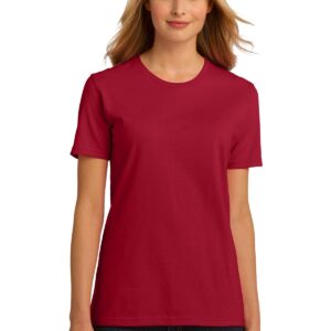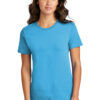 For a stronger, softer and smoother tee, look no further than this basic that’s crafted from 100% organic ring spun cotton minimizes environmental impact because it’s grown without harsh chemicals. | 5-ounce, 100% organic ring spun cotton Side seamed with a contoured body for a feminine fit Removable tag for comfort and relabeling