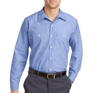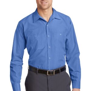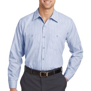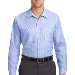 This hardworking IL50 style has a professional stripe and is tested through 50 industrial launderer washes. 4.25-ounce, 65/35 poly/cotton with Touchtex™ technology for superior color retention, stain release and wickability Yarn-dyed fabric Open collar with sewn-in stays 7 buttons including button at neck Two button-through pockets Bartacked pencil stall on left pocket