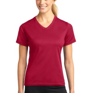 Dri-Mesh double-layer construction releases heat and sweat for superior breathability that keeps you cool, dry and comfortable through any workout. | 3.8-ounce, 100% polyester double knit mesh Taped neck Crossover self-fabric v-neck Tag-free label Princess seams for flattering fit Set-in sleeves Side vents * Due to the nature of 100% polyester performance fabrics, special care must be taken throughout the screen printing process.