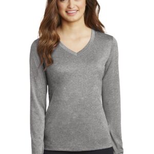 The long sleeve version of our value-priced, moisture-wicking, snag-resistant, breathable favorite.| 3.8-ounce, 100% polyester jersey Gently contoured silhouette Removable tag for comfort and relabeling Self-fabric V-neck Set-in sleeves Due to the nature of 100% polyester performance fabrics, special care must be taken throughout the printing process.