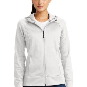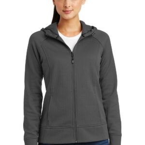 A welded mesh texture joins solid tech fleece for a state-of-the-art look that also performs with moisture wicking and snag resistance. 7.1-ounce, 100% polyester debossed mesh texture 100% polyester double-knit sleeves and hood Tag-free label Three-panel hood with drawcords and toggles Taped neck Headphone holding loops at neck Front and back princess seams Elongated cuffs and hem Raglan sleeves Reverse coil zipper with reflective zipper pull Side pockets Self-fabric cuffs and hem