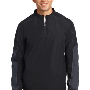 Colorblocking and piping give this water-repellent wind shirt athletic appeal. The 1/4-zip with cadet collar adds versatility and up-to-date style. | 100% polyester 100% polyester mesh lining Half-elastic, half self-fabric cuffs for comfort Left side seam zipper for easy on/off Side pockets Drawcord hem with toggle