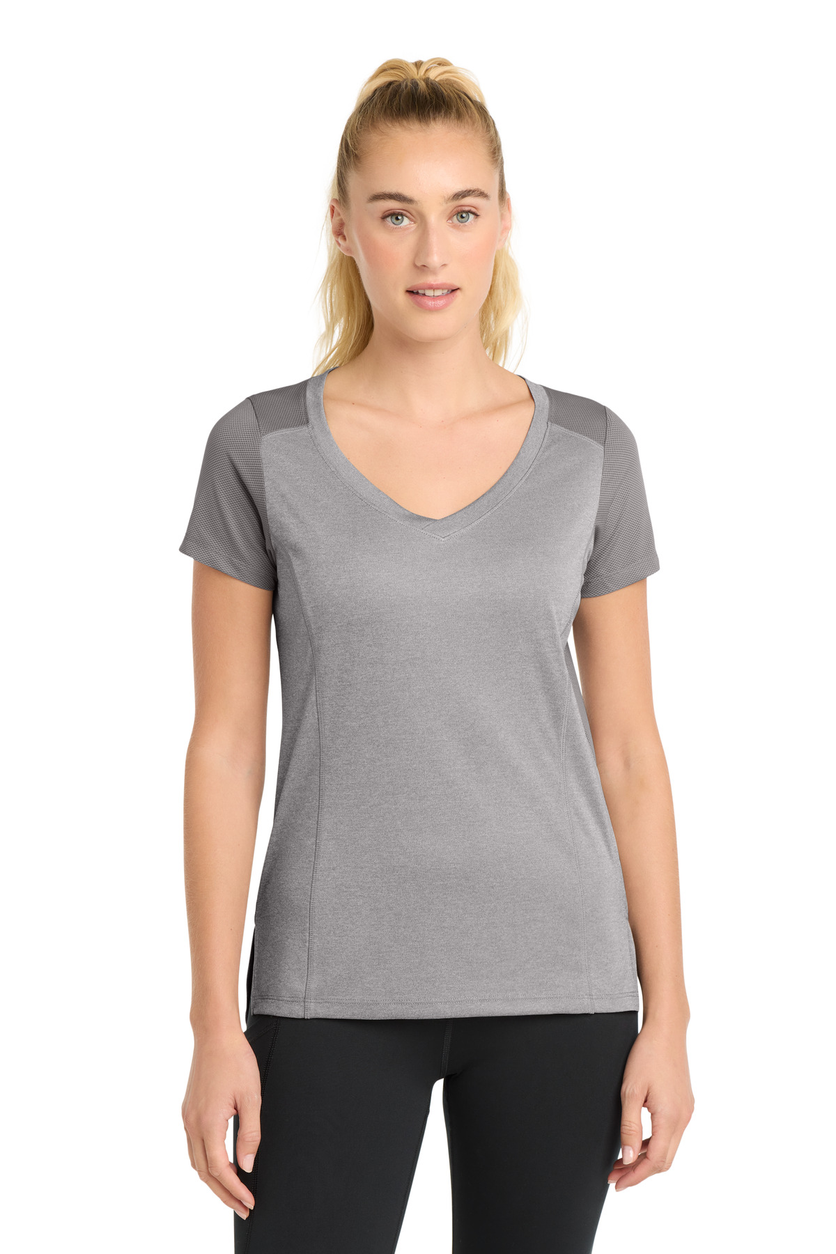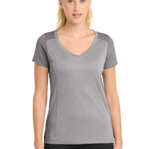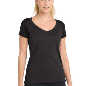 With a subtle heather texture and mesh panels at targeted heat zones, this tee has moisture-wicking technology, breathability and stretch for optimum performance. 4-ounce, 100% polyester with PosiCharge technology Dyed-to-match neck band Mesh panels at shoulders and underarms Tag-free label Wide V-neck Side vents Drop tail hem