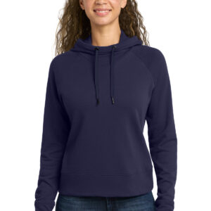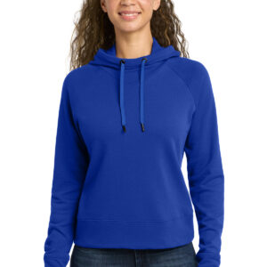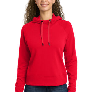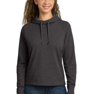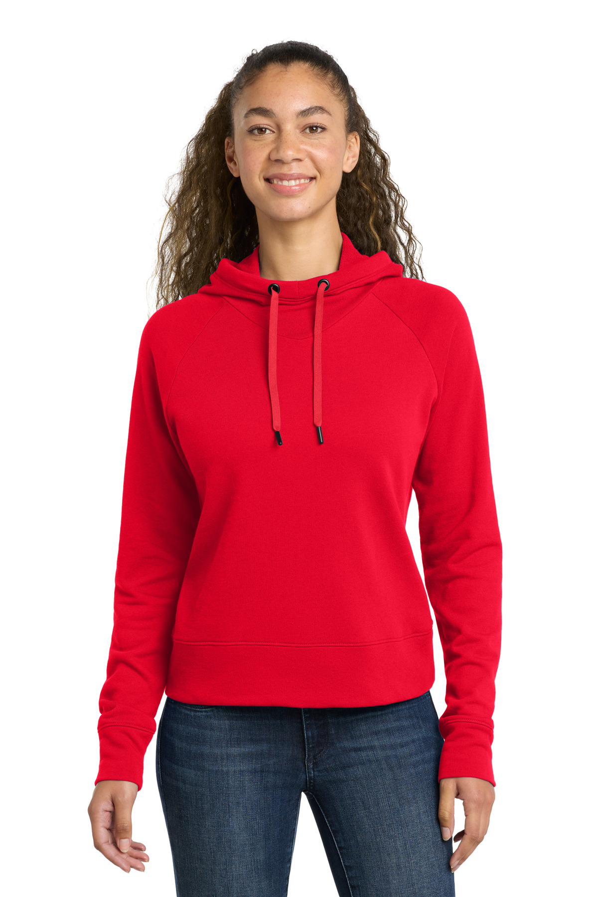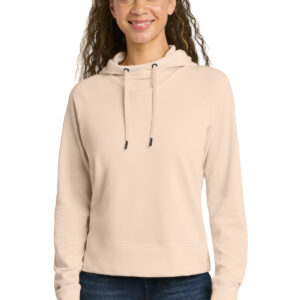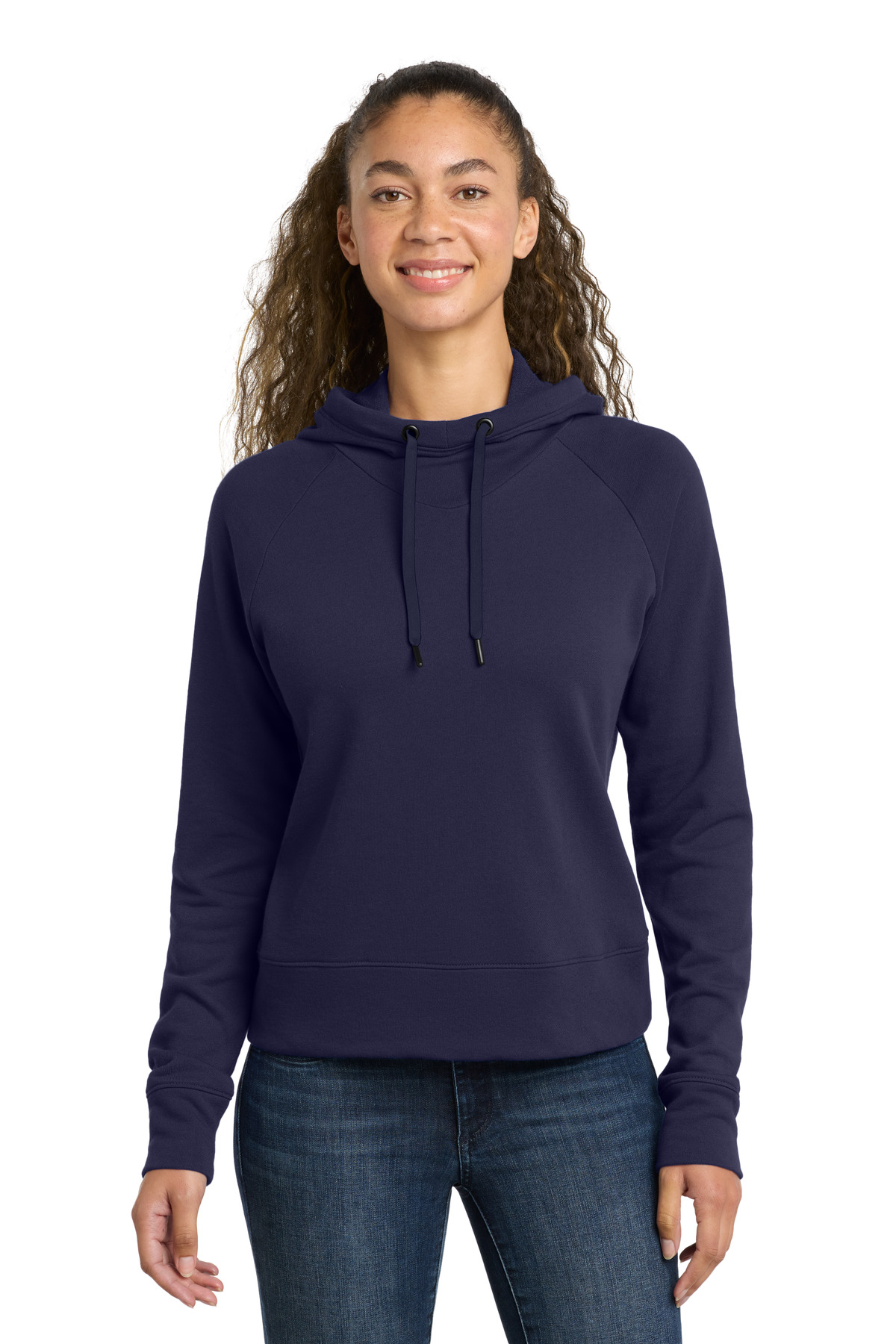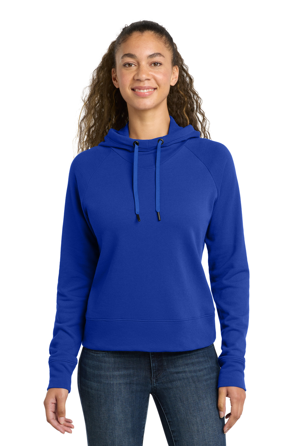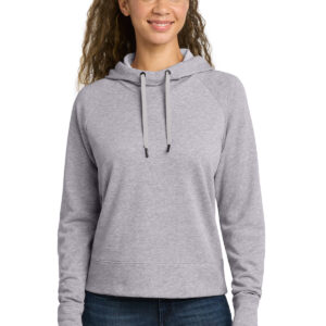 The casual ease of soft French terry in a versatile pullover. 6.5-ounce, 59/41 combed ring spun cotton/poly French terry Tag-free label Three-panel hood Cowl neck Dyed-to-match elastic drawcords with black plastic tips Cropped length