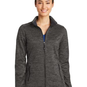 Our Electric Heather pattern adds an athletic look to this water-repellent, wind-resistant soft shell which moves and keeps you warm thanks to a soft grid fleece interior. 100% polyester knit shell with PosiCharge technology bonded to a water-resistant laminated film insert and a 100% polyester grid fleece lining 1000MM fabric waterproof rating 1000G/M2 fabric breathability rating Gently contoured silhouette Zip-through cadet collar Exposed molded center zipper with reflective zipper pull Princess seams Front zippered pockets Comfort fit binding at cuffs Slight drop tail hem * Please note: This product is transitioning from woven labels to tag-free labels. Your order may contain a combination of both labels