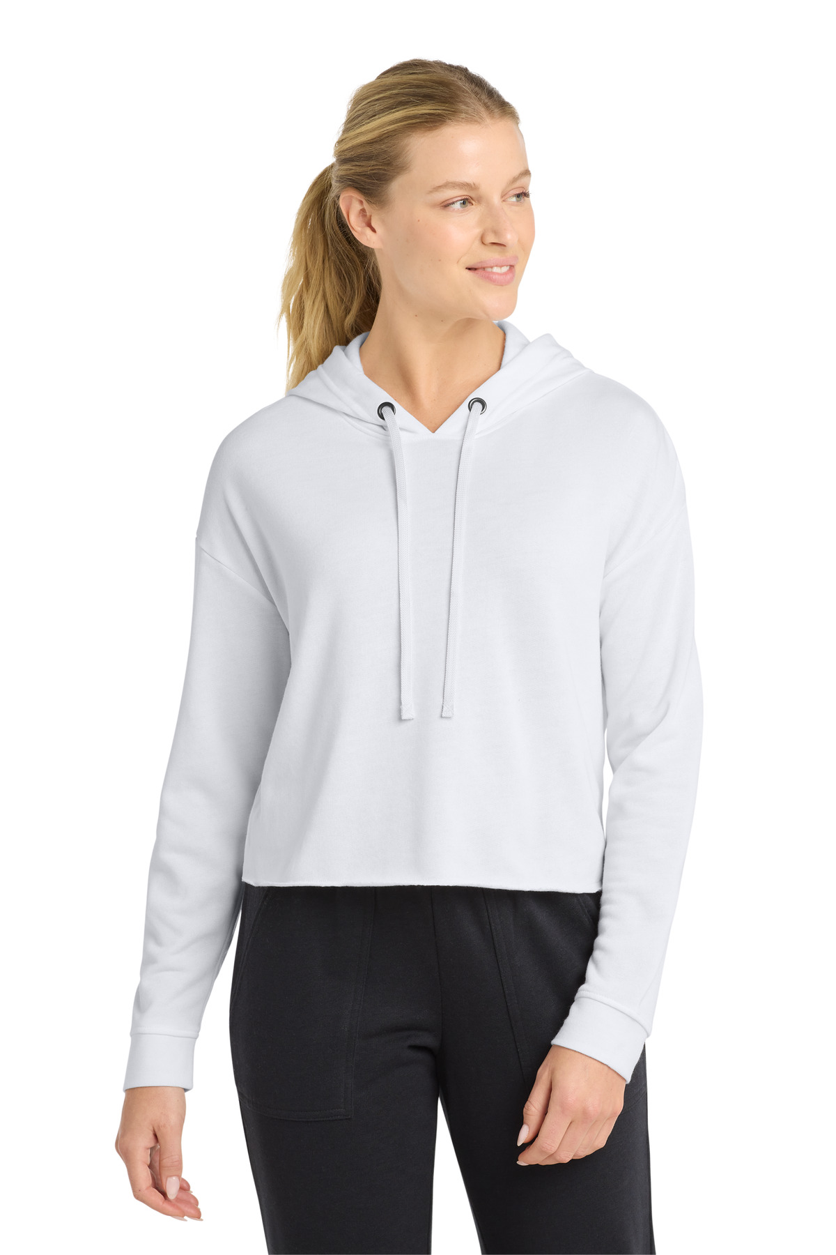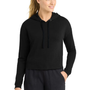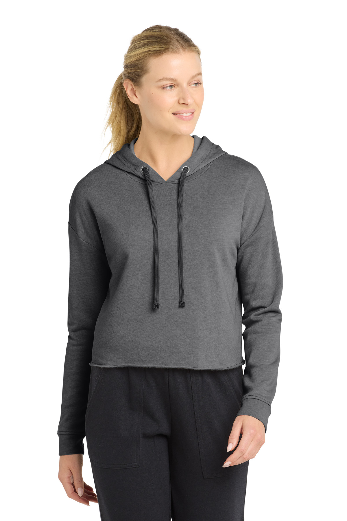An on-trend cropped fit joins an extra-soft hand, moisture wicking performance and color-locking PosiCharge technology for a winning look. 7.1-ounce, 75/13/12 poly/cotton/rayon with PosiCharge technology Boxier fit Drop shoulder Tear-away removable label Three-panel hood Hood and neck taping Rib knit cuffs Raw edge hem