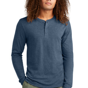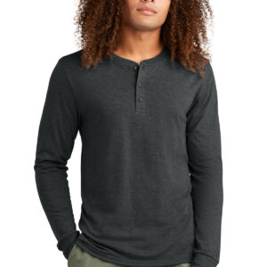 Three yarns form a perfect easygoing look in this henley version of our popular long sleeve tee. 4.5-ounce (153 GSM) 50/25/25 polyester/combed ring spun cotton/rayon, 32 singles 1×1 rib knit neck and cuffs 3-button placket Center front taping Tear-away label
