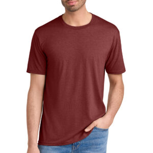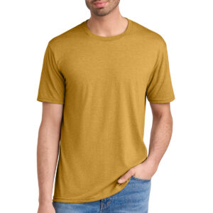Three yarns form the perfect easygoing look. 4.5-ounce (153 GSM) 50/25/25 polyester/combed ring spun cotton/rayon, 32 singles Tear-away label 1X1 rib knit neck shoulder to shoulder taping Please note: Some colors in this style are produced as both tubular and side seamed. Your order may contain a combination of both tees. Tri-Blend fabric infuses each garment with unique character. Please allow for slight color variations. Due to the heat sensitivity of tri-blend fabrics, special care must be taken throughout the printing process. Consult your decorator or ink supplier for best printing practices.
