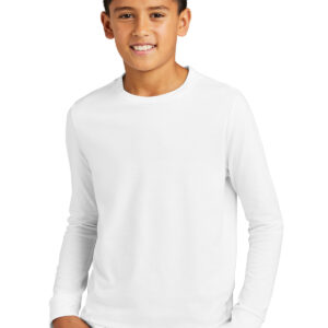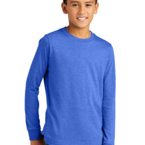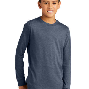The youth long sleeve version of our perfect tri crew. 4.5-ounce (153 GSM) 50/25/25 polyester/combed ring spun cotton/rayon, 32 singles 1×1 rib knit neck and cuffs Shoulder to shoulder taping Tear-away label