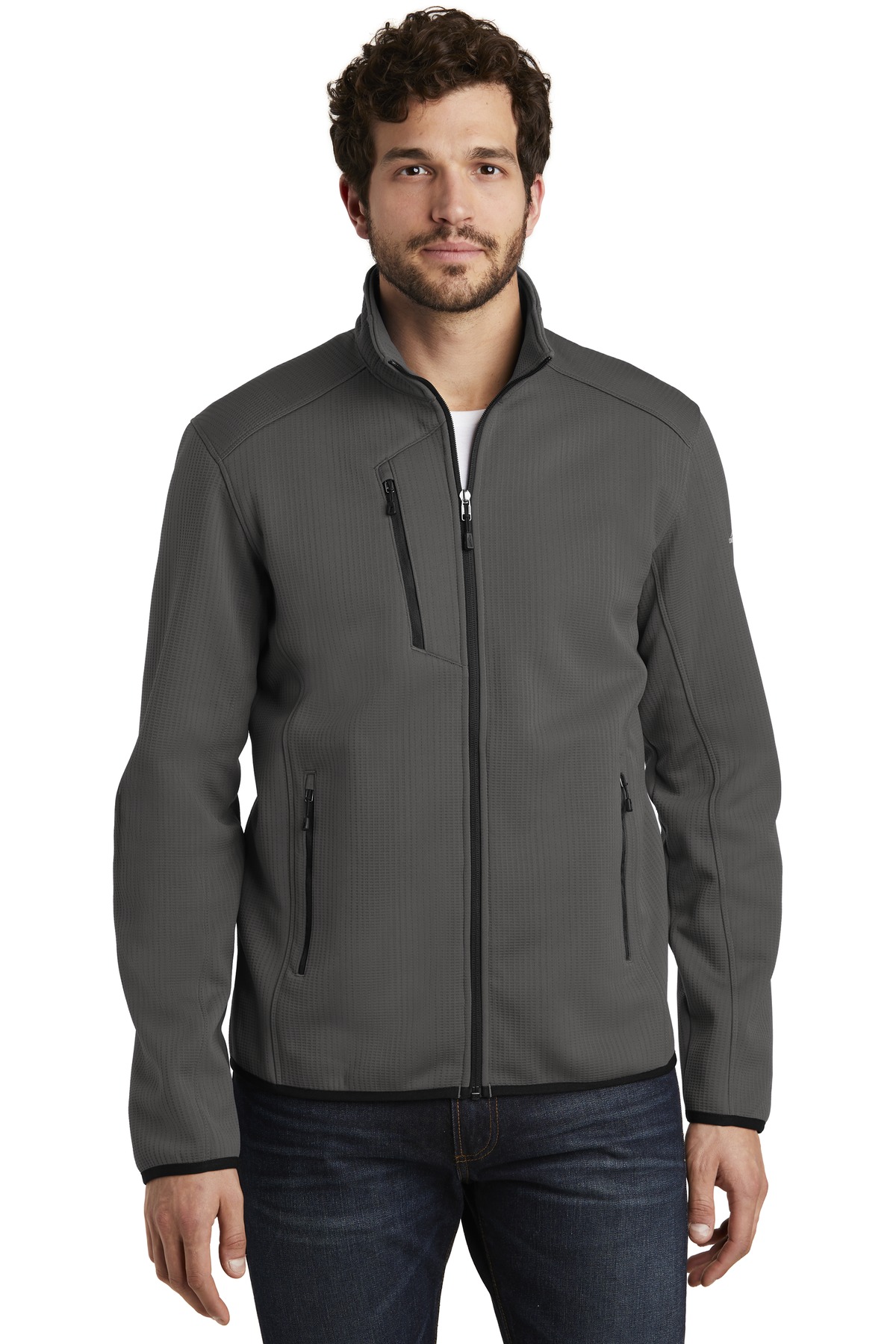 Combining textured and smooth-faced fleece for a dynamic look and unbeatable comfort, this full-zip also has superior mobility. Reverse coil zippers, front zippered pockets, stretch binding at cuffs and hem. Contrast Eddie Bauer heat transfer logo on left sleeve. Made of a textured 9.7-ounce, 100% polyester knit bonded to 100% polyester brushed-back fleece with an anti-pill finish inside.