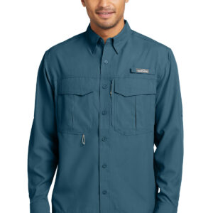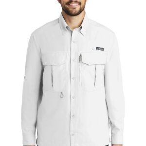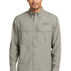Defend yourself from the sun, sweat and odors in our super lightweight, high-performance fishing shirt. This outdoor-ready style offers UPF 50+ protection and a moisture-control system that actively moves moisture away from your body to keep you cool, dry and comfortable. Microban ® – technology minimizes odors. | 2.3-ounce, 100% polyester ripstop 100% polyester mesh upper back lining Sun shield collar Built-in rod holder Two large fly box pockets with hook and loop closures Zippered chest pocket Utility loop and tool holder Cape back with mesh ventilation Hook and loop-fastened collar points Roll sleeves with button tabs
