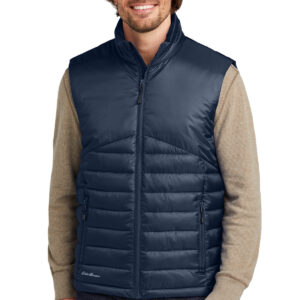 Minimal bulk meets maximized performance in this quilted vest that is built for your cold-weather adventures. Exposed, molded zippers with Eddie Bauer logo pulls. Zippered hand pockets. Contrast Eddie Bauer heat transfer logo on right hem. Made of 100% polyester shell and lining. 3-ounce, 100% polyester fill. Durable water-repellent (DWR) finish with a PU coating.