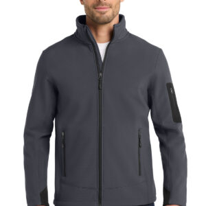 A rugged soft shell for hitting the trails or the town. A tough, textured ripstop shell and a warm plush high-pile fleece lining make this versatile jacket outdoorsy, yet technical. Performs with very good 5000MM fabric water protection and 5000G/M2 fabric breathability ratings. Two-way stretch. Reverse coil zippers, front zippered pockets, welded zippered left sleeve pocket, open cuffs with woven contrast insets and an open hem with locking drawcords. Decoration access pocket. Contrast Eddie Bauer logo embroidered on the left sleeve. Made of a 100% polyester woven ripstop shell bonded to a water-resistant laminated film and a 100% polyester high-pile fleece lining.