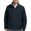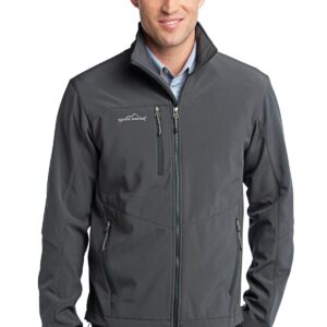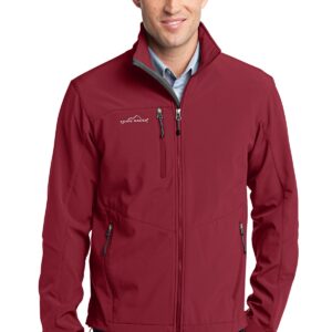 This windproof, three-layer soft shell boasts two-way stretch, water protection and breathability due to a 3K/3K fabric. 3000MM fabric water protection rating, 3000G/M 2 fabric breathability rating, component loops at back neck and cuffs for securing to other jackets, reverse coil zippered chest pocket, front zippered pockets, adjustable tab cuffs with hook and loop closures and an open hem with locking drawcord. Contrast Eddie Bauer heat transfer logo on right chest. Made of 96/4 poly/spandex bonded to a water-resistant laminated film insert and a 100% polyester microfleece interior.