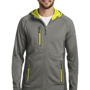 This sporty midweight jacket pairs smooth-faced fleece with stretch side panels for comfort during active adventures. Three-panel hood with contrast lining. Reverse coil zippers, welded zippered contrast pockets. Contrast Eddie Bauer heat transfer logo on left sleeve. Made of 7.7-ounce, 100% polyester diamond dobby fleece. 88/12 poly/spandex side panels.