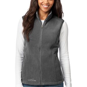 Ward off early morning chills by insulating your core with this soft, cozy vest. Princess seams, dyed-to-match reverse coil zippers, front zippered pockets with tricot lining, binding at armholes and an open hem. Embroidered Eddie Bauer contrast logo on right hem. Made of 6.9-ounce, 100% polyester fleece. Produced using Low Impact Technology (L.I.T.) which uses less dyestuffs, thermal energy and water for enhanced softness, performance and after-care quality.