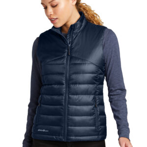 Minimal bulk meets maximized performance in this quilted vest that is built for your cold-weather adventures. Exposed, molded zippers with Eddie Bauer logo pulls. Zippered hand pockets. Contrast Eddie Bauer heat transfer logo on right hem. Made of 100% polyester shell and lining. 3-ounce, 100% polyester fill. Durable water-repellent (DWR) finish with a PU coating.