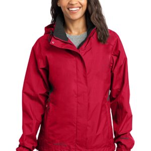 From misty mornings to evening downpours, this fully seam-sealed, completely waterproof colorblock jacket will help keep you dry, warm and protected from whatever Mother Nature throws at you. Highly waterproof and breathable 5K/5K fabric. 5000MM fabric water protection rating, 5000G/M 2 fabric breathability rating, detachable hood with locking drawcord for adjustability, exterior storm flap with hook and loop closures, front Vislon zippered pockets, adjustable tab cuffs with hook and loop closures and an open hem with locking drawcord. Decoration access pocket. Embroidered Eddie Bauer contrast logo on right hem. WeatherEdge ® embroidered logo on left sleeve indicates reliable waterproofing and breathable technology. 100% polyester dobby shell, mesh body lining, 100% nylon accents.