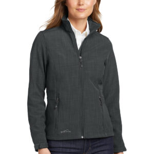 Gear up for the office or a weekend adventure in this soft shell that offers water protection and breathability thanks to its 5K/5K fabric. 5000MM fabric water protection rating. 5000G/M2 fabric breathability rating. Reverse coil zippers, front zippered pockets, adjustable tab cuffs with hook and loop closures and an open hem. Princess seams and embroidered Eddie Bauer contrast logo on right hem. Made of a 100% polyester woven shell bonded to a water-resistant laminated film insert and a 100% polyester fleece.