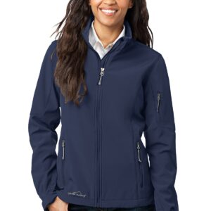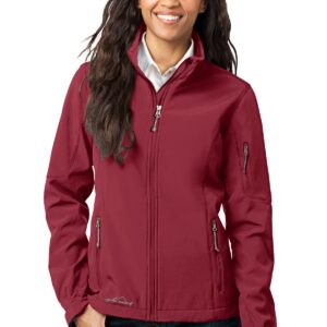 This windproof, three-layer soft shell boasts two-way stretch, water protection and breathability due to a 3K/3K fabric. 3000MM fabric water protection rating, 3000G/M 2 fabric breathability rating, princess seams, component loops at back neck and cuffs for securing to other jackets, front zippered pockets, zippered left sleeve pocket, adjustable tab cuffs with hook and loop closures and an open hem with locking drawcord. Contrast Eddie Bauer heat transfer logo on right hem. Made of 96/4 poly/spandex bonded to a water-resistant laminated film insert and a 100% polyester microfleece interior.