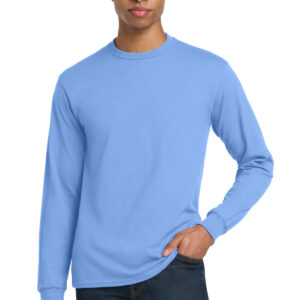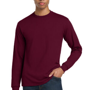 | 5.5-ounce, 50/50 cotton/poly DryBlend moisture-wicking properties Recycled, high-performing black tear-away label Non-topstitched, classic width, rib collar Taped neck and shoulders Rib knit cuffs Classic fit, seamless body Please note: This product is transitioning from tear-away labels to recycled, high-performing black tear-away labels. Your order may contain a combination of both labels.