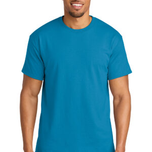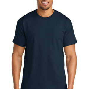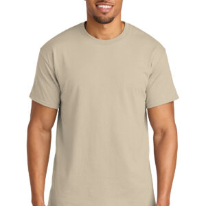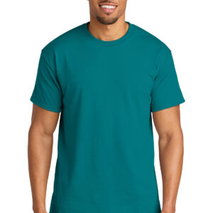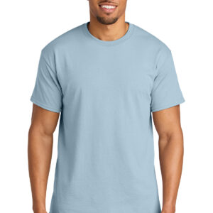 | 5.5-ounce, 50 US cotton/50 poly 65 US cotton/35 poly (Heathers) DryBlend moisture-wicking properties Recycled, high-performing black tear-away label Non-topstitched, classic width, rib collar Taped neck and shoulders Classic fit, seamless body Please note: This product is transitioning from tear-away labels to recycled, high-performing black tear-away labels. Your order may contain a combination of both labels.