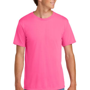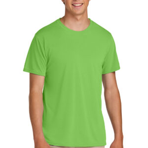 5-ounce, 100% polyester jersey knit Moisture-wicking Anti-odor properties Recycled, high-performing black tear-away label Seamed single-needle 3/4′ collar Double-needle sleeves and bottom hem Safety Green is compliant with ANSI/ISEA 107 high visibility standards for background color Due to the nature of 100% polyester performance fabrics, special care must be taken throughout the printing process. Please note: This product is transitioning from tear-away labels to recycled, high-performing black tear-away labels. Your order may contain a combination of both labels.