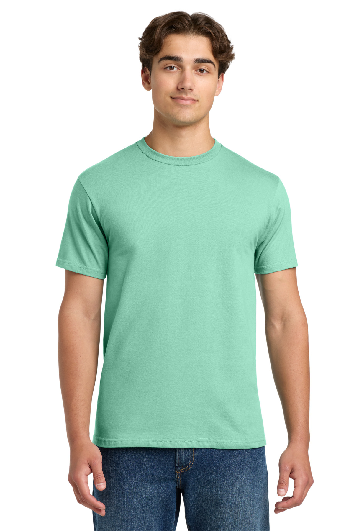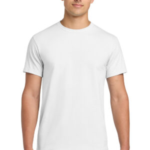 6-ounce, 100% ring spun cotton 90/10 ring spun cotton/poly (Sport Grey) 50/50 ring spun cotton/poly (Graphite Heather) Seamless non-topstitched 7/8ÿ¿ neck Taped neck and shoulders Recycled, high-performing black tear-away label Double-needle sleeves and hem Please note: This product is transitioning from tear-away labels to recycled, high-performing black tear-away labels. Your order may contain a combination of both labels.