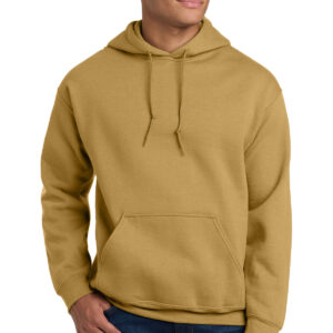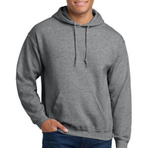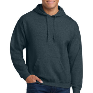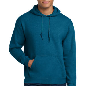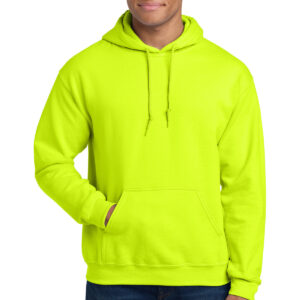 | 8-ounce, 50/50 cotton/poly 60/40 poly/cotton (Heathers) Double-needle stitching at waistband and cuffs Double-lined hood with dyed-to-match drawcord 1×1 rib knit cuffs and waistband with spandex Front pouch pocket Safety Green is compliant with ANSI/ISEA 107 high-visibility standards Recycled, high-performing black tear-away label Please note: This product is transitioning from tear-away labels to recycled, high-performing black tear-away labels. Your order may contain a combination of both labels.