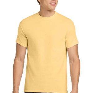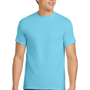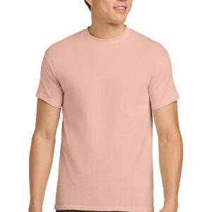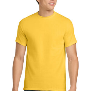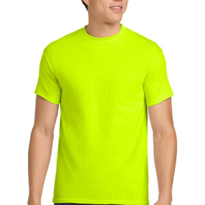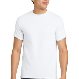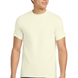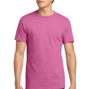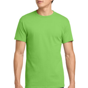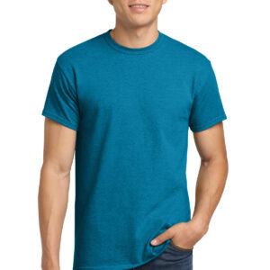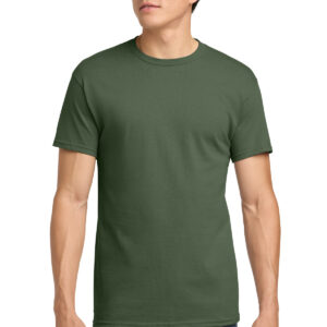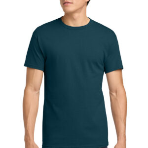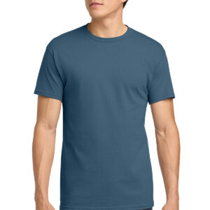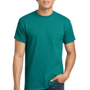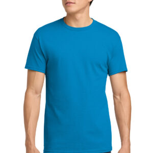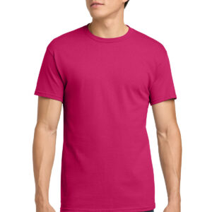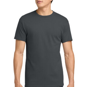 5.3-ounce, 100% US cotton 99/1 cotton/polyester (Ash) 90/10 cotton/polyester (Sport Grey, Antique Cherry Red, Antique Irish Green, Antique Jade Dome, Antique Orange, Antique Sapphire) 50/50 cotton/polyester (Blackberry, Dark Heather, Heather Military Green, Heather Navy, Heather Radiant Orchid, Heather Red, Heather Sapphire, Lilac, Midnight, Neon Blue, Neon Green, Russet, Sunset, Tweed, Safety Green, Safety Orange, Safety Pink, Graphite Heather) Non-dyed fabric with visible specks of fibers and cotton seeds (Natural) Non-topstitched, classic width, rib collar Taped neck and shoulders Recycled, high-performing black tear-away label Classic fit, seamless body Please note: This product is transitioning from tear-away labels to recycled, high-performing black tear-away labels. Your order may contain a combination of both labels.