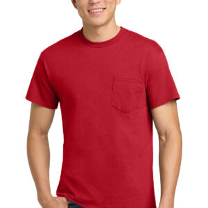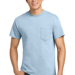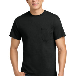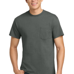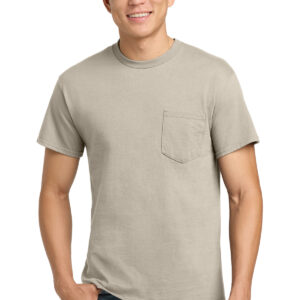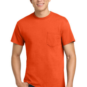 | 6-ounce, 100% US cotton 50/50 cotton/poly (Safety Green, Safety Orange) 99/1 cotton/poly (Ash) 90/10 cotton/poly (Sport Grey) Non-topstitched, classic width, rib collar Taped neck and shoulders Left chest pocket Classic fit, seamless body Recycled, high-performing black tear-away label Please note: This product is transitioning from tear-away labels to recycled, high-performing black tear-away labels. Your order may contain a combination of both labels.