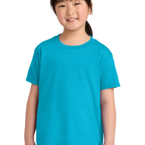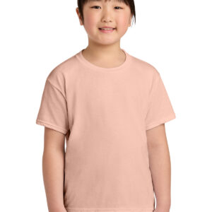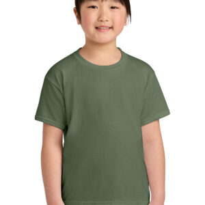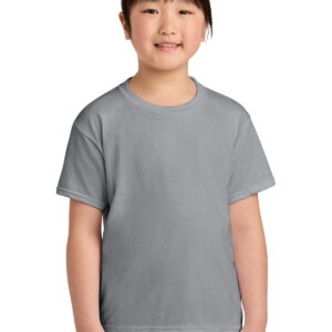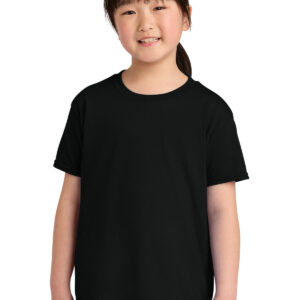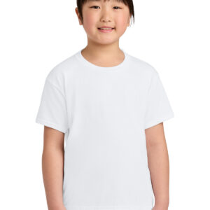 4.6-ounce, 60/40 ring spun cotton/polyester CVC blend Subtle heather texture on all colors except Pitch Black and White Recycled, high-performing black tear-away label Softstyle’s high stitch density fabric offers a smoother printing surface Narrow width, rib collar Taped neck and shoulders Modern classic fit, seamless body Double-needle hem