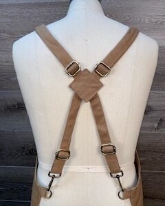 HUMVEE is a highly mobile multi-purpose bib apron. Desert Tan with matching tan stitching, this 12-ounce brushed cotton blend feels amazing and has mechanical stretch that moves with you. The Tan straps with antique metal sliders accent this apron with 11 pockets throughout is sure to make heads turn. Aside from looking good, it is an incredibly durable and useful bib apron with a centered, 4 split pocket on top, 7 waist pockets, including an iPhone friendly pocket.