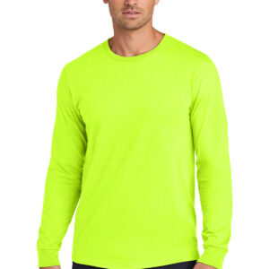 4.7-ounce, 100% cotton jersey 60/40 CVC cotton/polyester (Heathers, Safety Green, Safety Orange) 90/10 CVC cotton/polyester (Athletic Heather) Seamless 1×1 rib knit collar with clean neckline Shoulder to shoulder taping 1×1 rib knit cuffs Classic fit Tear-away label